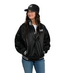 Outer shell of 100% nylon satin * Lined with 100% polyester brushed tricot * Woven label * Snap front * Raglan sleeves for maximum mobility * Striped rib-knit collar cuffs and bottom band * Front pockets * Water-resistant